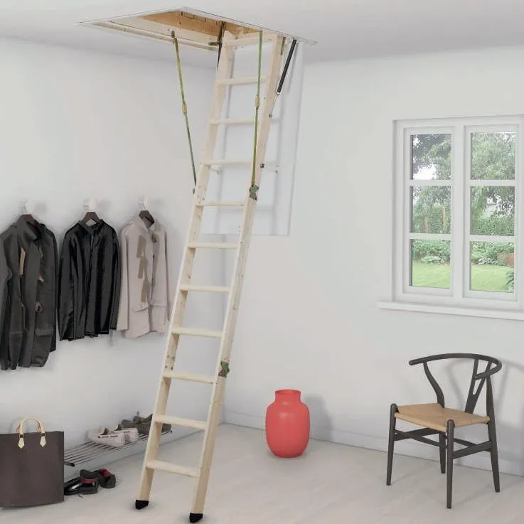 В комплекте: люк из сэндвич-панели, пружинный механизм "короб-рычаг", короб, трехсекционная лестница с буковыми ступенями, замок люка, штанга для раскладывания лестницы, пластиковые наконечники для ножек