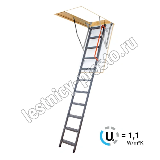 Герметичность всей конструкции достигается благодаря утеплению крышки люка и контурному уплотнению по периметру, что предотвращает возможные теплопотери. Чердачную лестницу очень легко разложить и сложить благодаря наличию специального стержня с четырехугольной насадкой. Установленные в лестнице угловые петли-шарниры нового образца придают ей высокую прочность и надежность, а также предохраняют короб от возможной деформации. Основное преимущество чердачной складной металлической лестницы LMK сводится к ее небольшим габаритам при сохранении высокой функциональности, прочности, надежности и эстетичности конструкции. Монтировать лестницу очень просто, для этого не придется затрачивать много времени и сил. Применение лестничной конструкции этого типа позволяет существенно экономить пространство. Монтажный комплект LXK в комплекте не поставляется.