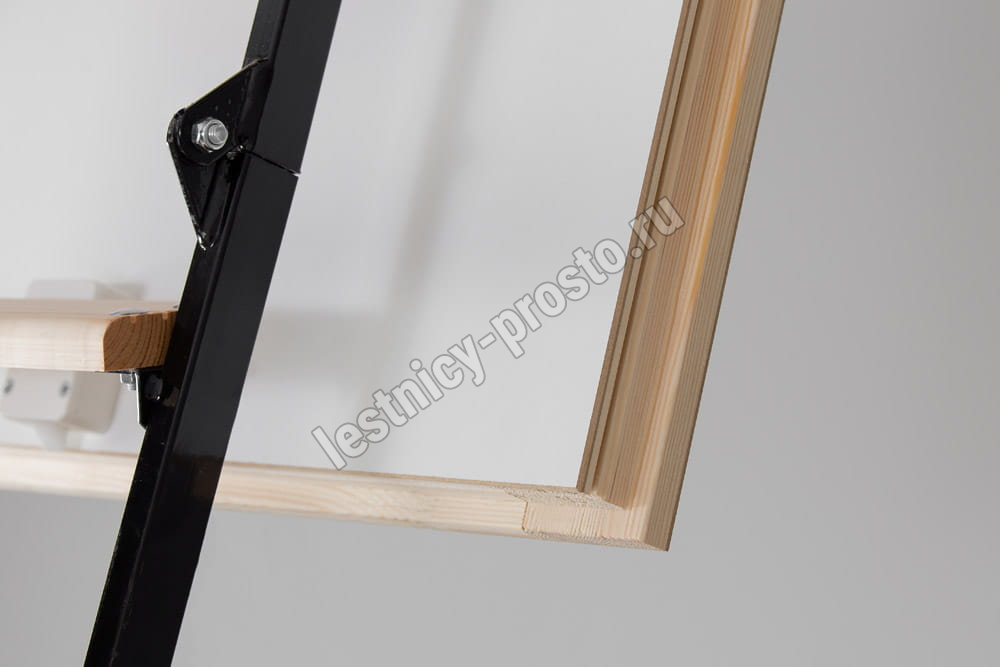 Складная 4-х секционная чердачная лестница. Ступени выполнены из сосны, имеют противоскользящие насечки, направляющие из металла.