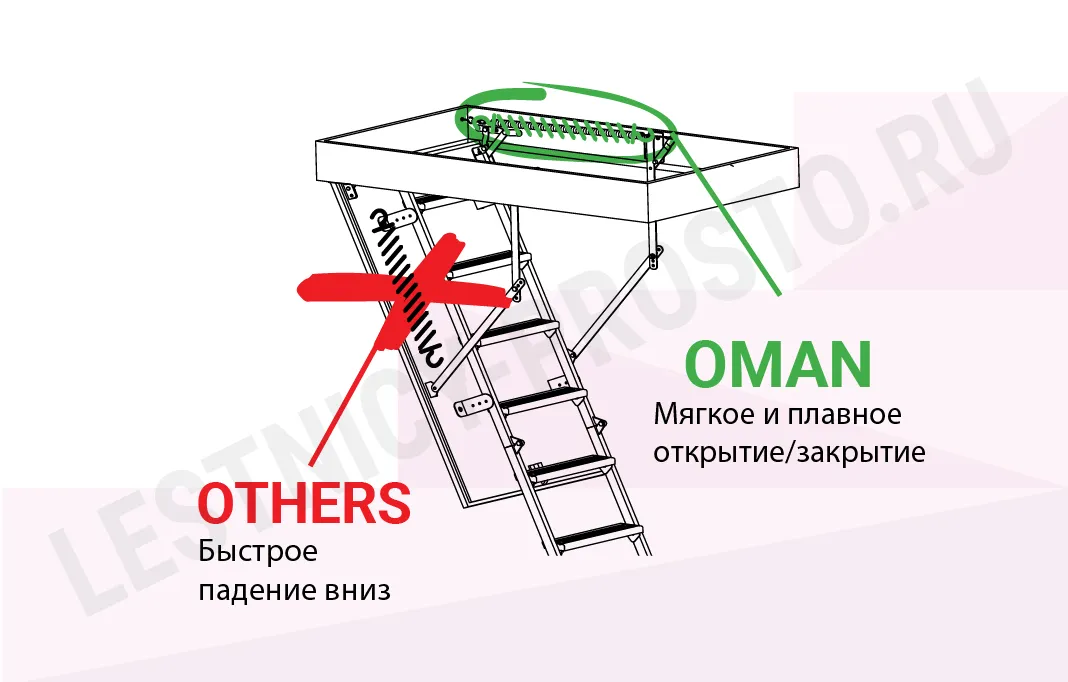 Чердачная лестница OMAN NOZYCOWE 60×100 см, h-300 см