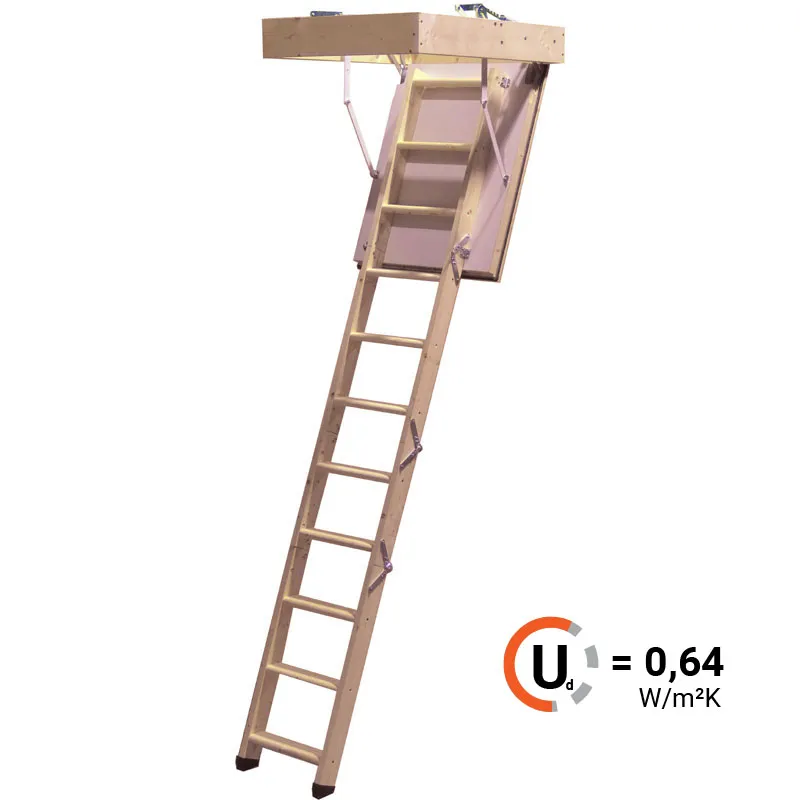 Складная деревянная лестница  из 3-х секций с утепленным изолированным люком идеально подходит для крайне холодных чердачных помещений.