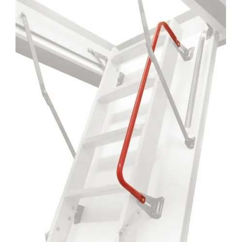 Противопожарная лестница, огнестойкость EI 60 Лестница чердачная складная металлическая 3-х секционная. Ступени полностью выполнены из металла и покрашена порошковой краской. Термоизоляционная крышка типа “сэндвич “, толщиной 66мм, утеплена пенопластом , облицована с двух сторон ДВП белого цвета. Короб деревянный высотой 170мм. Лестница имеет 3 уплотнителя, один проходит по периметру короба, и два по периметру крышки люка, в том числе и противопожарный.