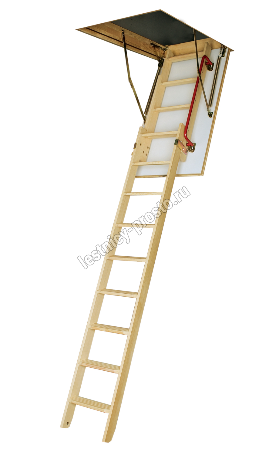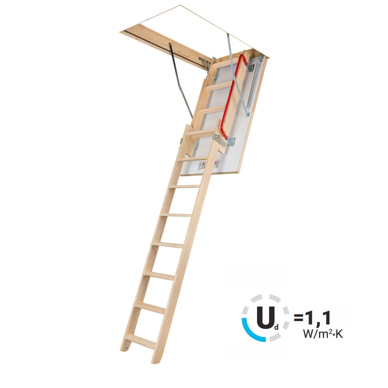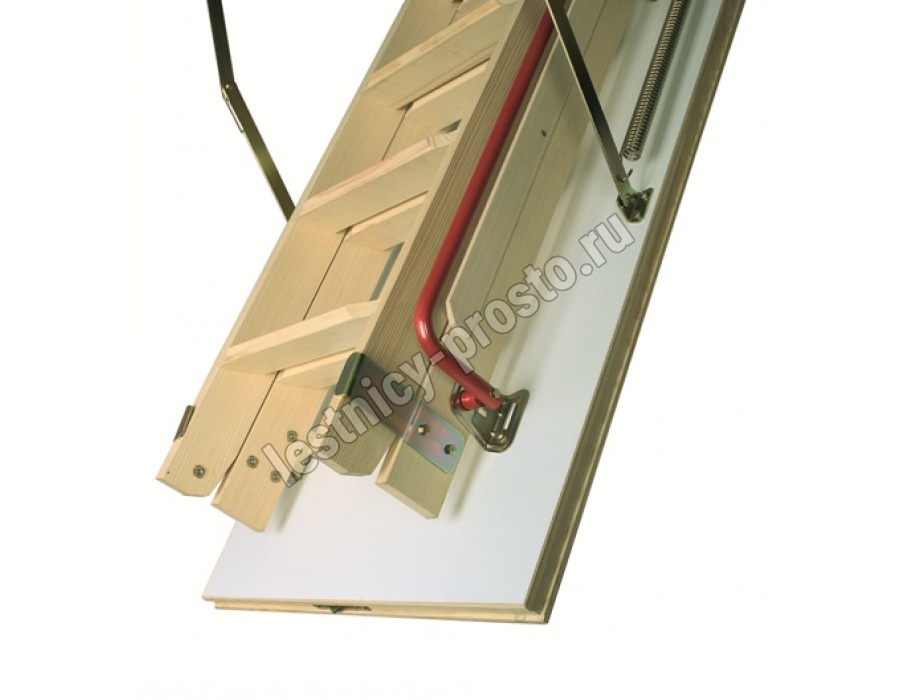 Двухсекционная раздвижная чердачная лестница LDK предназначена для помещений, где недостаточно места для складных лестниц. Данная модель также хорошо сохраняет тепло (толщина крышки с утеплителем – 36 мм), проста, удобна и безопасна в использовании, как и лестницы Smart и Komfort, но в тоже время позволяет максимально экономить драгоценное свободное пространство в доме. Крышка люка облицована ДВП белого цвета, что делает ее практически незаметной при установке в светлом или белом потолке. Для большего удобства и безопасности эксплуатации лестница LDK оснащена боковым металлическим поручнем и противоскользящими выемками на ступенях.