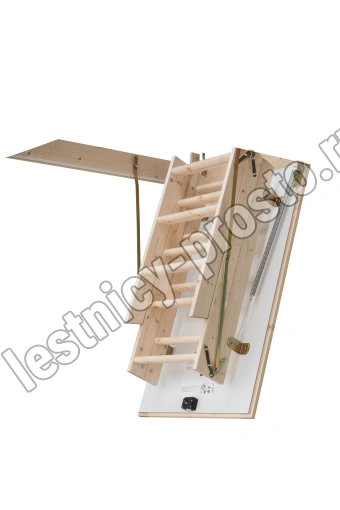 HOBBY 26 - трехсекционная утепленная лестница из скандинавской медленнорастущей ели, отличающейся повышенной прочностью, ступени из сосны, имеют антискользящие насечки.