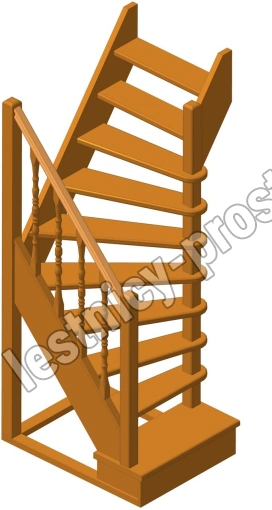 Деревянная межэтажная лестница ЛЕС-91 2250-2475 проем 1090-780, Сосна