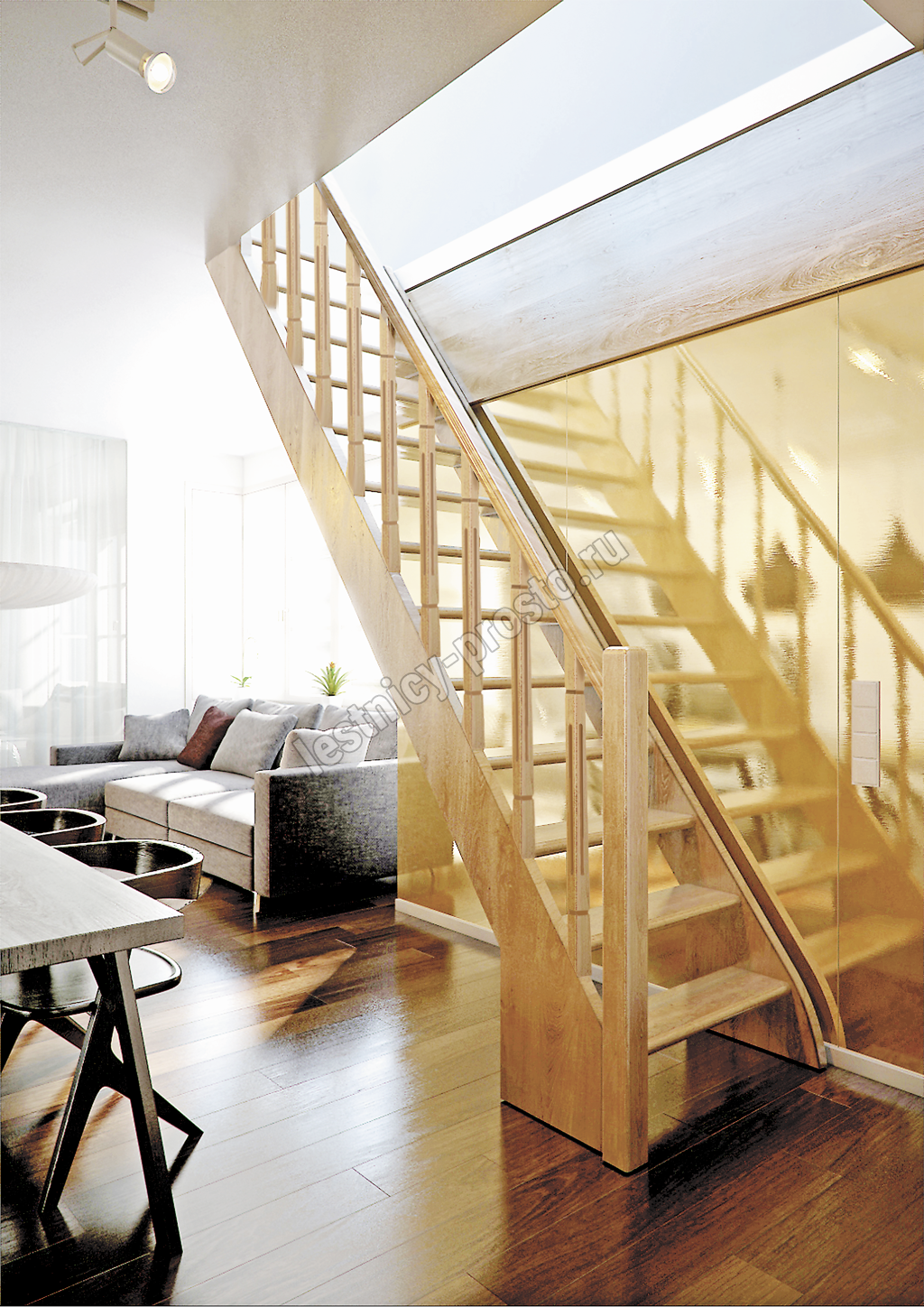 Лестница поставляется в разобранном виде. В базовой комплектации все элементы лестницы без какого-либо покрытия. Типовые ограждения можно заменить на любые другие.