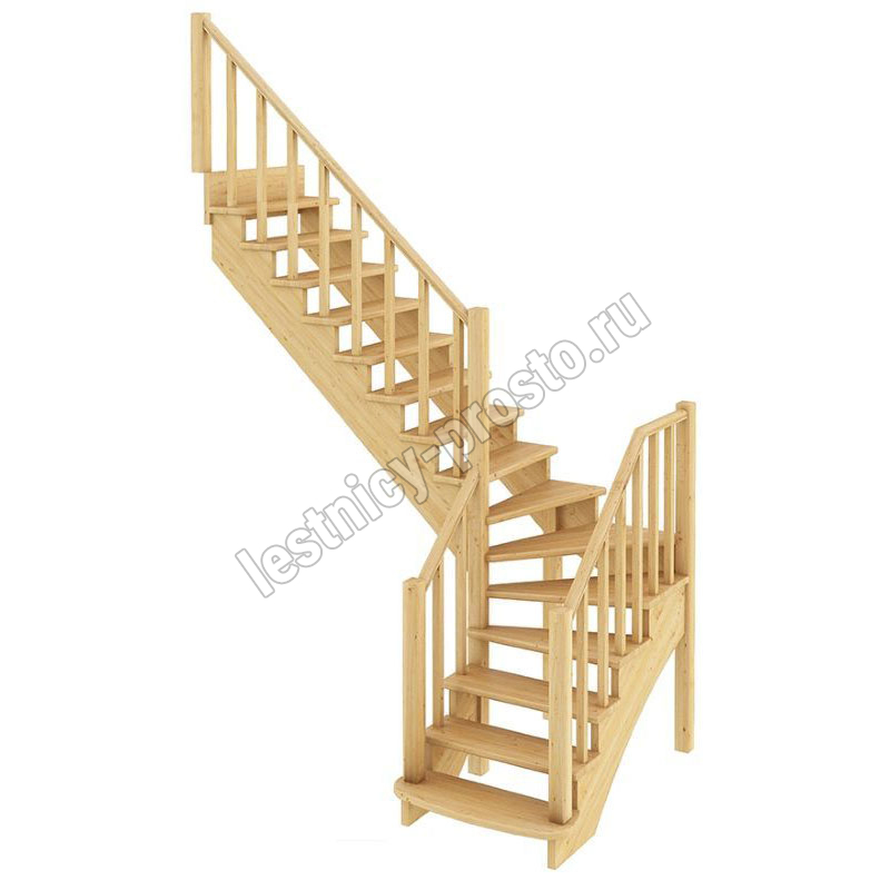 Базовый комплект включает в себя деревянные элементы лестницы и ограждения ;без какого-либо покрытия.