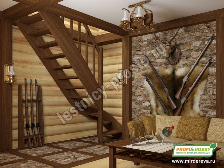 Ступени и поручень лестницы изготовлены из бука, остальные элементы из сосны.