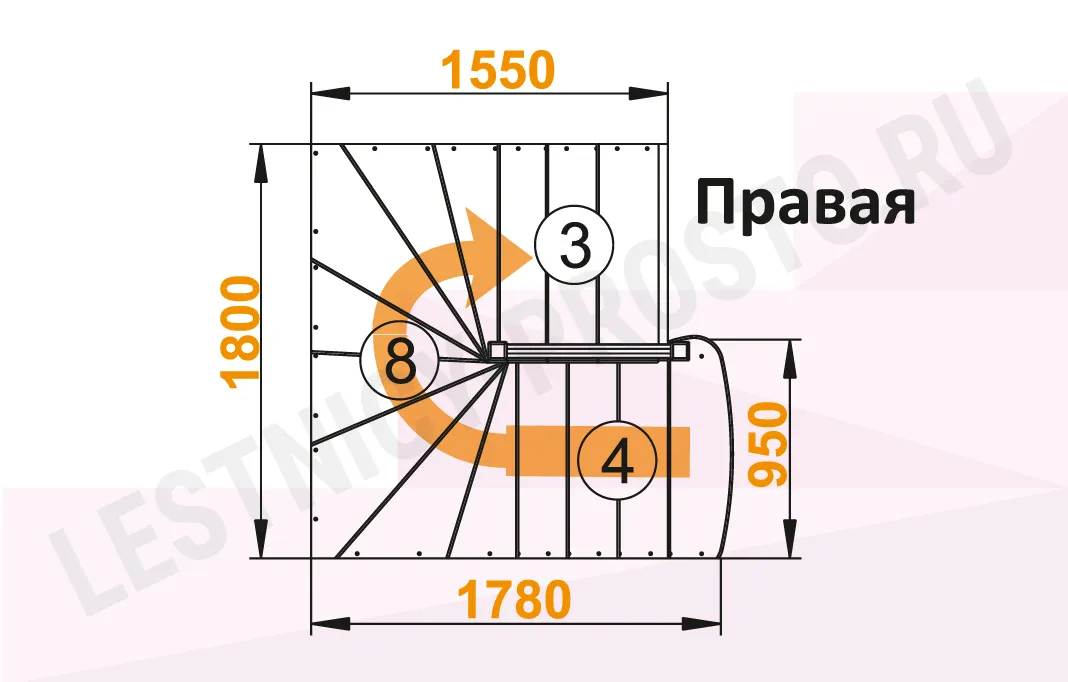 Лестница К-003М/1 с поворотом направо