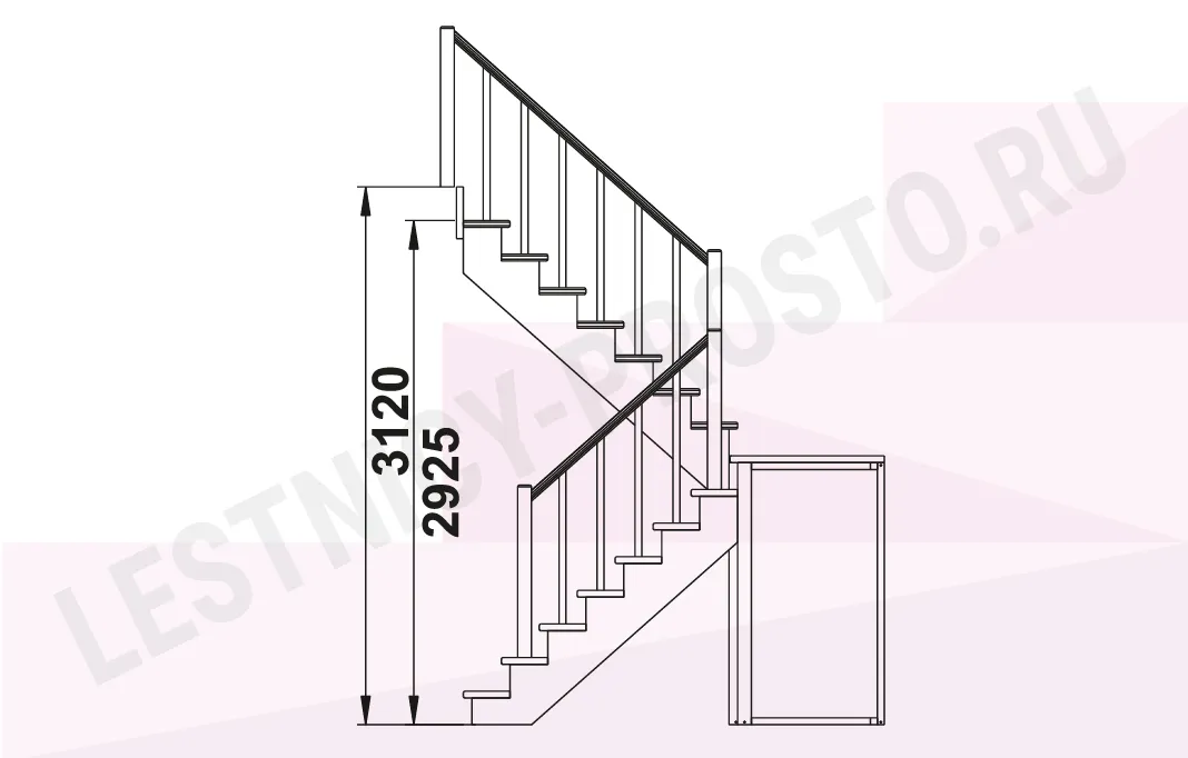 Базовый комплект включает в себя деревянные элементы лестницы с подступёнками и ограждение без какого-либо покрытия.