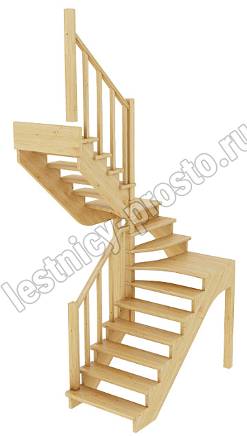 Ограждение лестницы с одной стороны. Базовый комплект включает в себя деревянные элементы лестницы и ограждения без какого-либо покрытия.