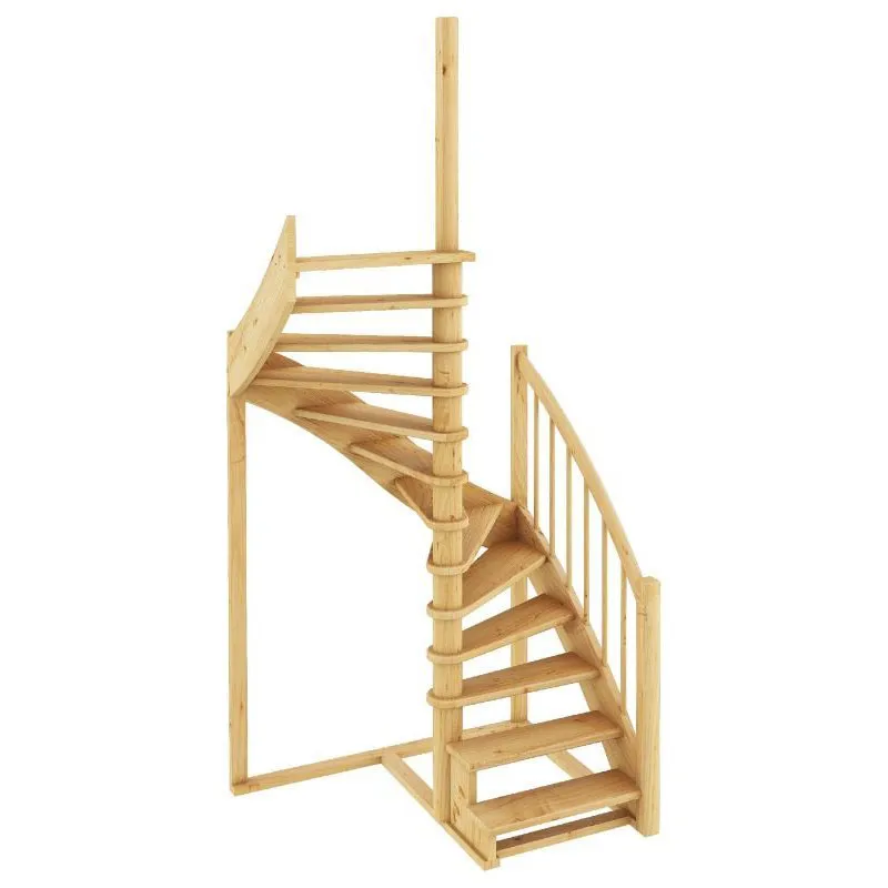 Базовый комплект включает в себя деревянные элементы лестницы и ограждения без какого-либо покрытия.