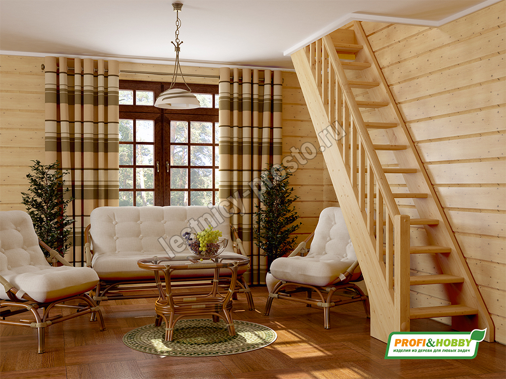 Лестница из сосны ЛС-10М под покраску с подступенками