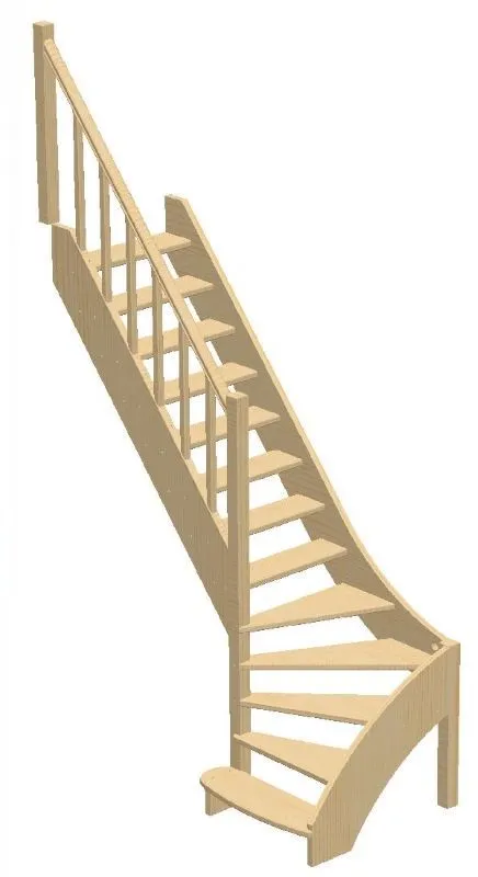 Базовый комплект включает в себя деревянные элементы лестницы и ограждения без какого-либо покрытия.