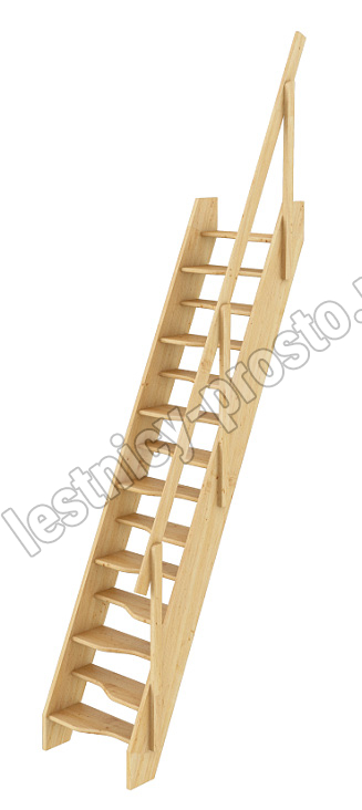 Ступени и поручень лестницы изготовлены из ясеня, остальные элементы из сосны.