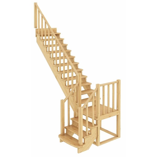 Базовый комплект включает в себя деревянные элементы лестницы и ограждения без какого-либо покрытия.