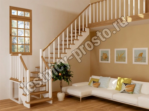 Ступени и поручень лестницы изготовлены из ясеня, остальные элементы из сосны.