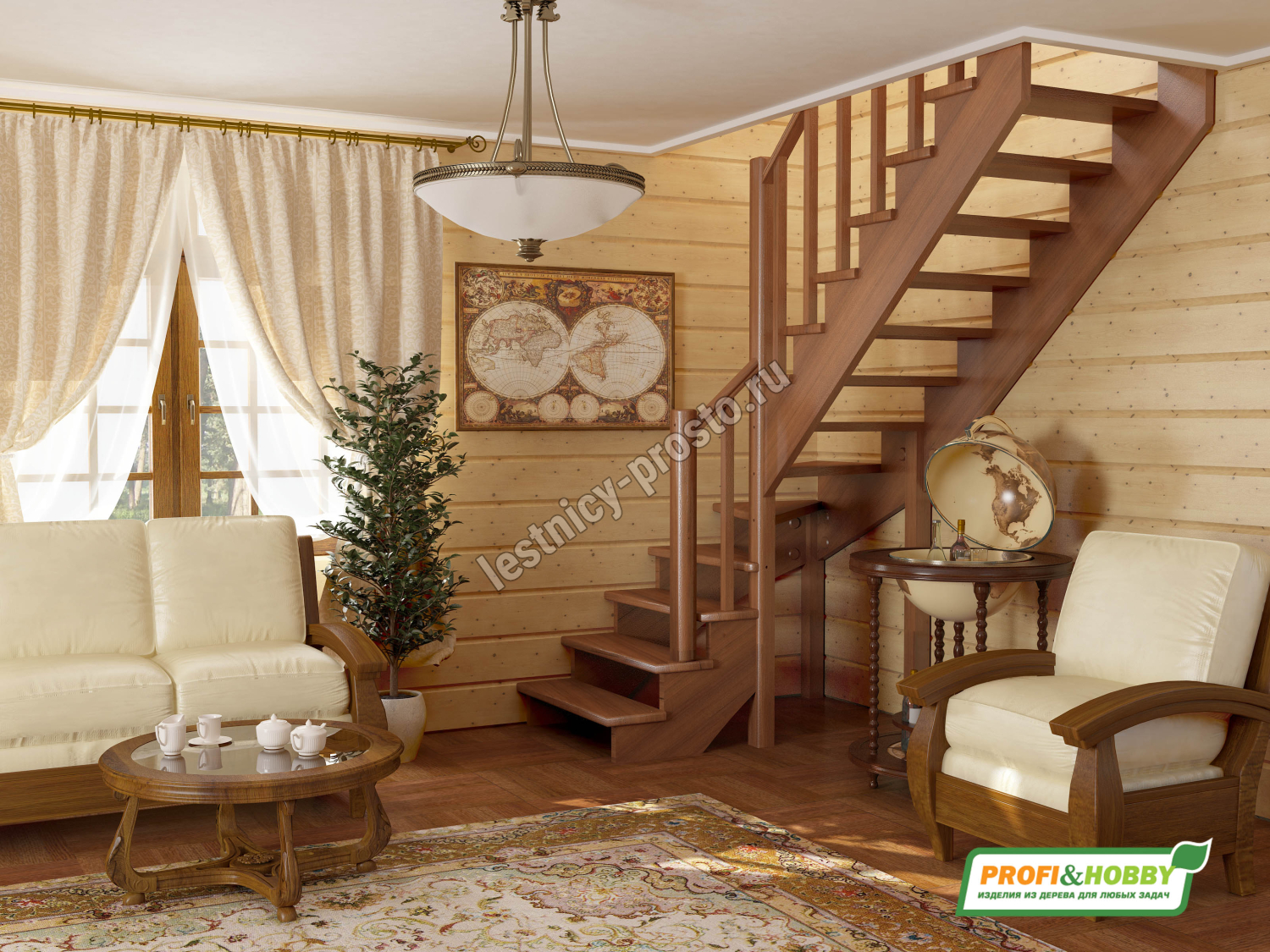 Базовый комплект включает в себя деревянные элементы лестницы и ограждения без какого-либо покрытия. Вы можете заказать у нас покраску лестницы в цвета, отвечающие особенностям вашего помещения.