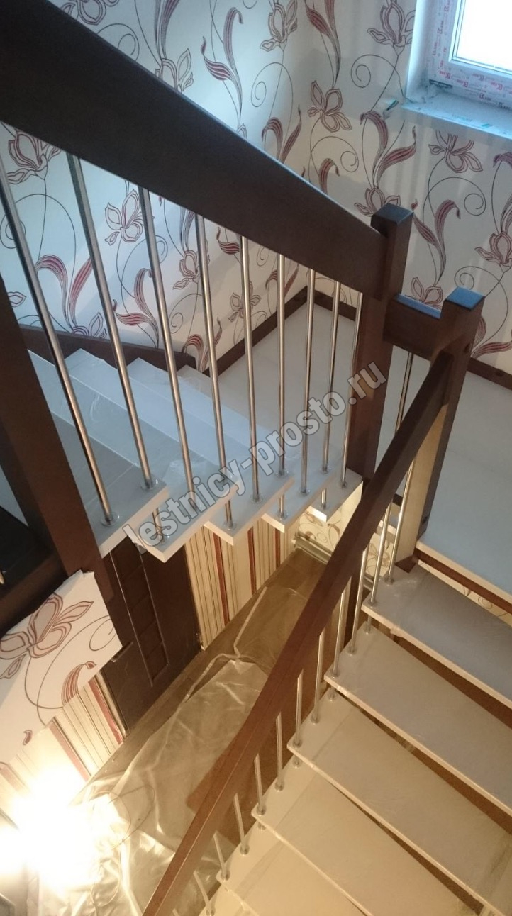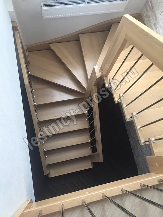 Надёжная современная лестница выполнена по немецкой технологии. Стоимость указана для лестницы с ограждением (с одной стороны); Поставляется в разобранном виде, в комплекте необходимый крепёж; Лестницу можно собрать самостоятельно; Так же, вы можете заказать услугу монтажа нашими специалистами; 4 вида породы дерева для изготовления лестницы: сосна, бук, ясень, дуб; возможна комбинированная лестница: из сосны (ступени бук, ясень, дуб); Деревянные элементы без какого-либо покрытия, отшлифованы, готовы к покраске. За дополнительную плату, вы можете изменить любые параметры, а именно: увеличить глубину ступени; увеличить ширину марша до 900 мм. и выше; заказать подступенки к лестнице; заказать отделку перекрытия (между 1-м и 2-м этажами); изготовить дополнительный промежуточный марш; заказать ограждение 2-го этажа; покраска в любой цвет или несколько цветов или покрытие защитными средствами; дополнение балясины из нержавеющей стали деревянными элементами; покраска балясин из нержавеющей стали порошковой краской в цвет RAL.