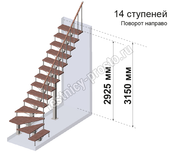 Комплект для Г-образной лестницы MONO h3137.5 из 14 ступеней.