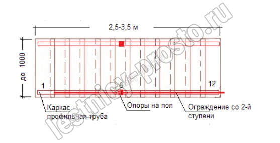 Комплект ограждений для г-образной лестницы на металлокаркасе PROSTO DUE или PROSTO DOUBLE из 12 ступеней. <br>