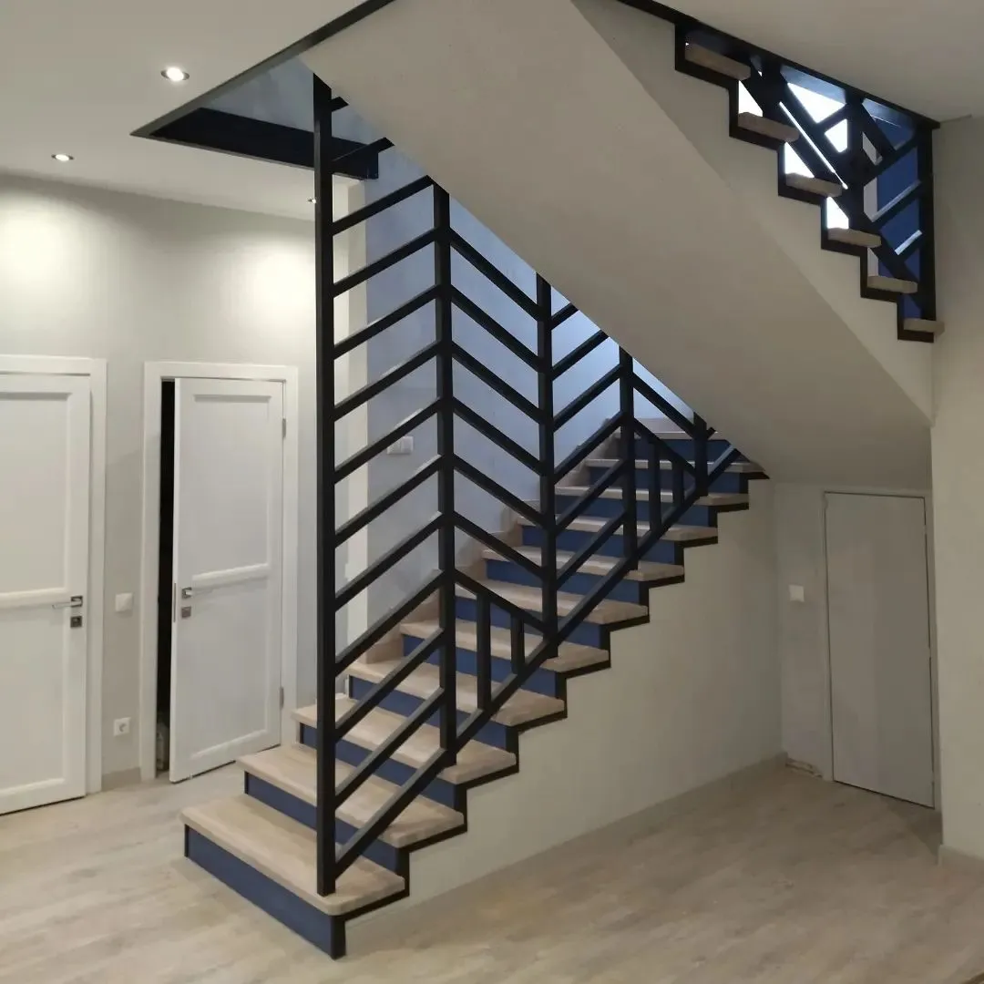 Деревянные элементы: столбы и поручень в базовой комплектации без окрашивания и какого-либо покрытия, металлические элементы окрашены в цвет каркаса лестницы.