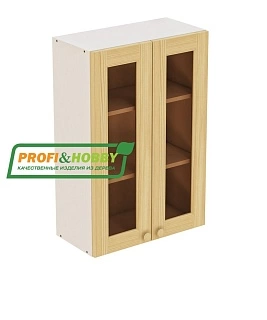Шкаф навесной 2 двери 600х340х720 + фасад под стекло сосна бесцветный акриловый лак