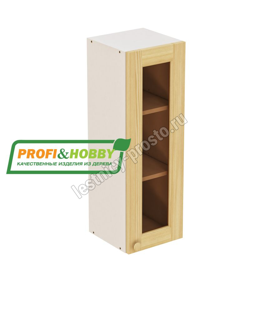 Шкаф навесной 300х340х960 + фасад сосна под стекло бесцветный акриловый лак