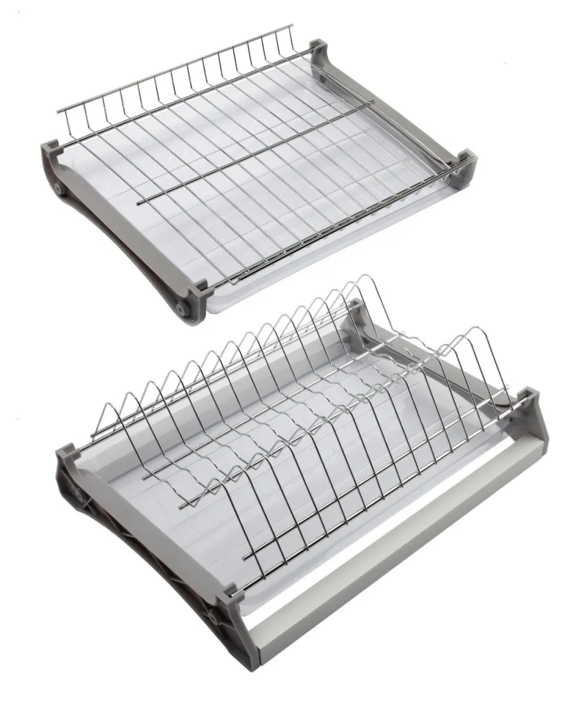 Сушка для посуды с двумя алюминиевыми профилями и двумя пластиковыми поддонами. Пластиковые держатели - 4 шт.