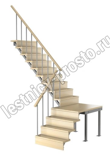 Универсальная лестница на металлическом каркасе с поворотной площадкой. Идеально дополнит любой интерьер, имеет современный вид и удобна в использовании. Монтаж осуществляется силами двух человек на объекте по указаниям, приведенным в паспорте на лестницу.