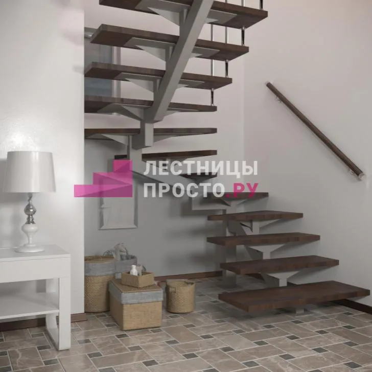 Конструкция представляет собой стальной монокосоур, на который крепятся ступени из выбранной породы дерева.