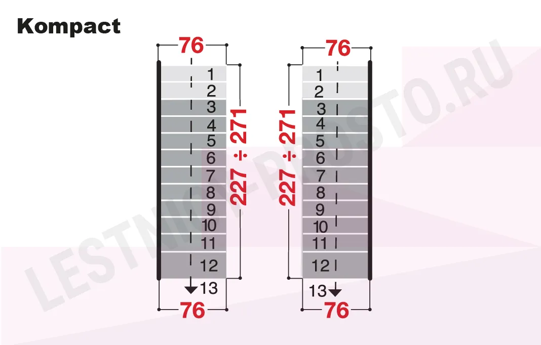 Параметры ступени лестницы Kompact 74