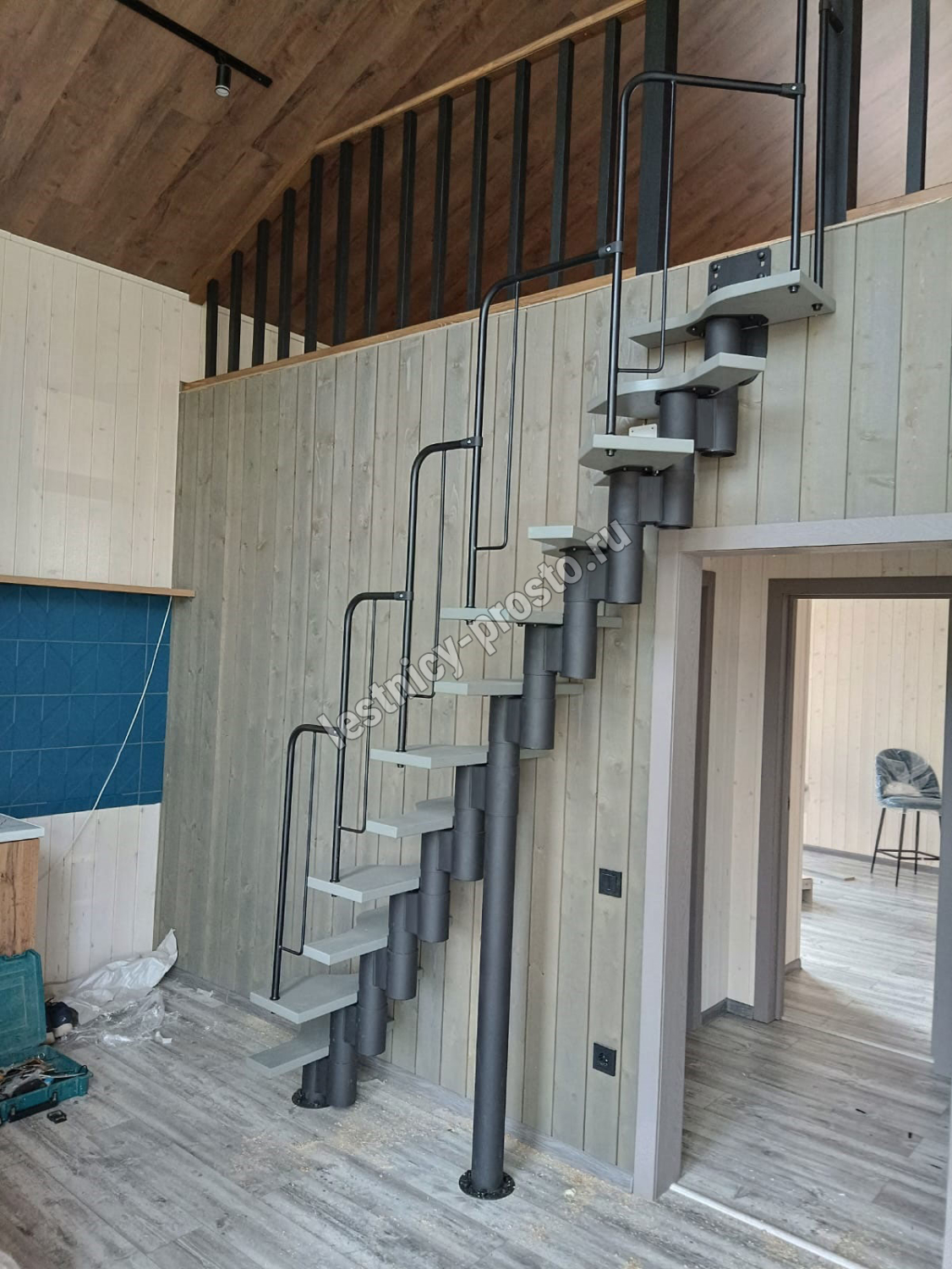 Лестница Prosto Urban Black гусиный шаг 700 мм, h216-312 см (12 ступеней), дуб