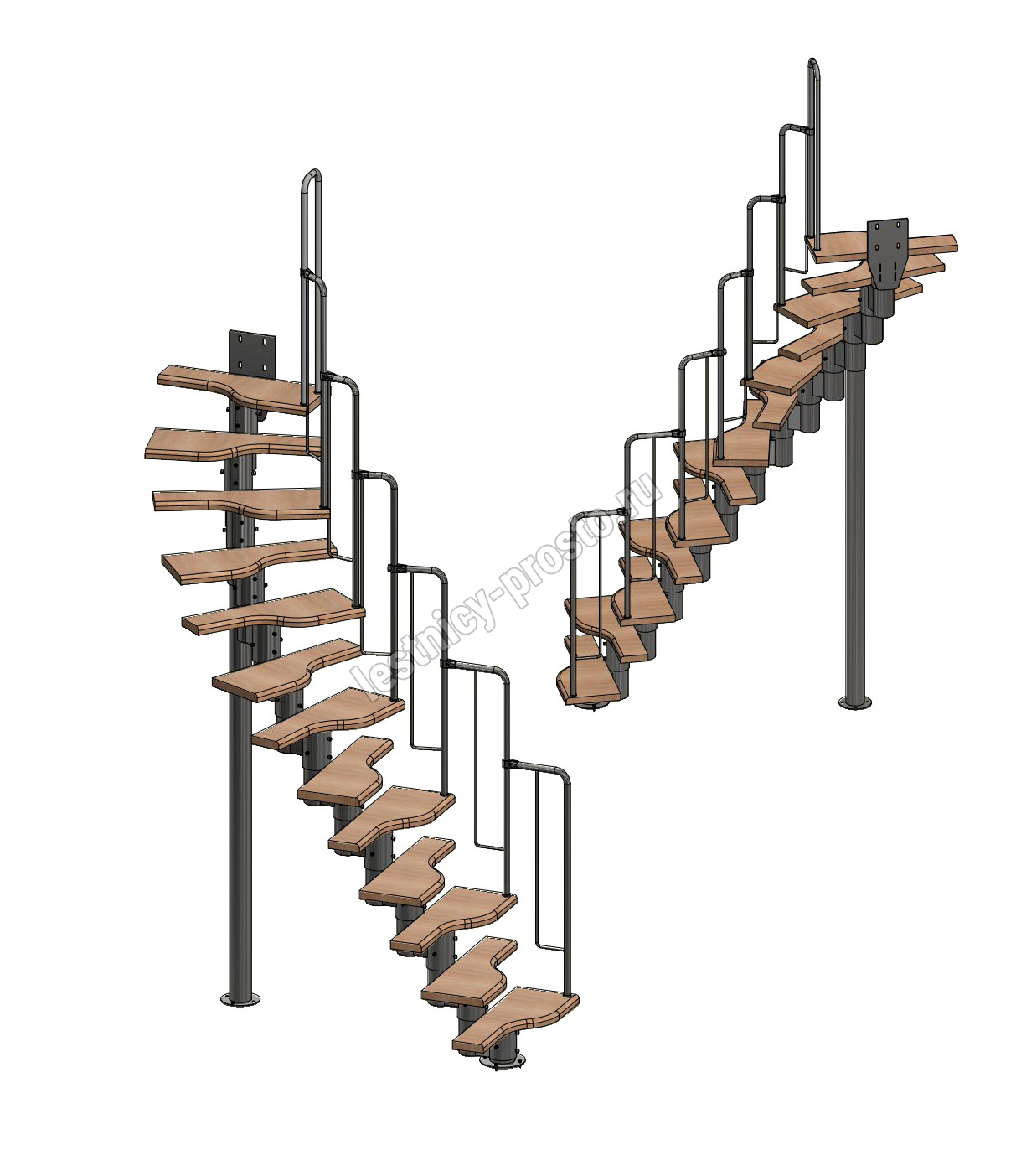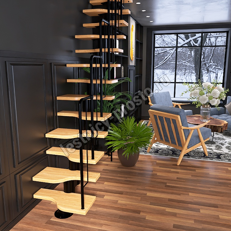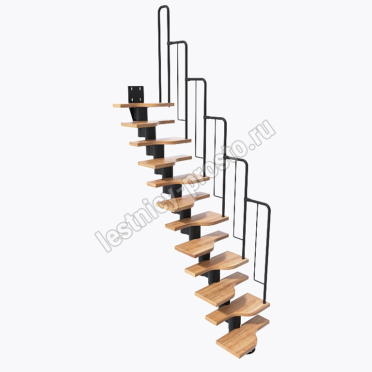 Лестница Prosto Urban Black гусиный шаг 700 мм, h234-336 см (13 ступеней), дуб