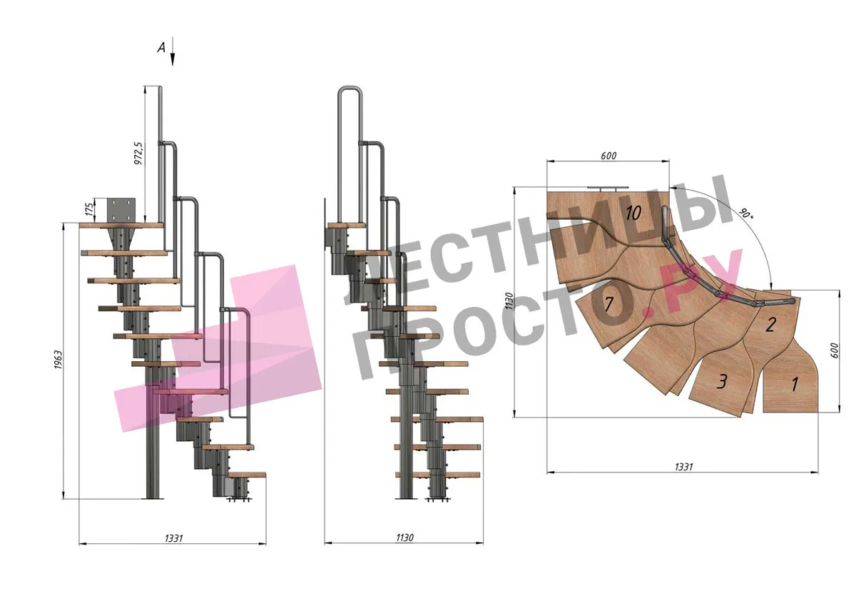 Высота лестницы 1800 - 2640 (10 ступеней) мм