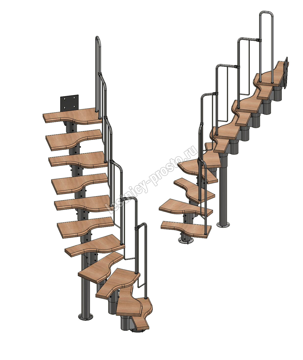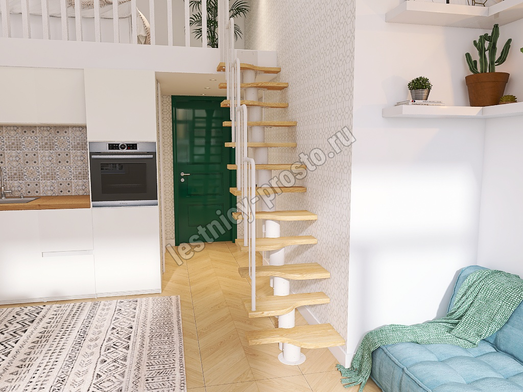 Лестница Prosto Urban White гусиный шаг 600 мм, h198-288 см (11 ступеней), бук