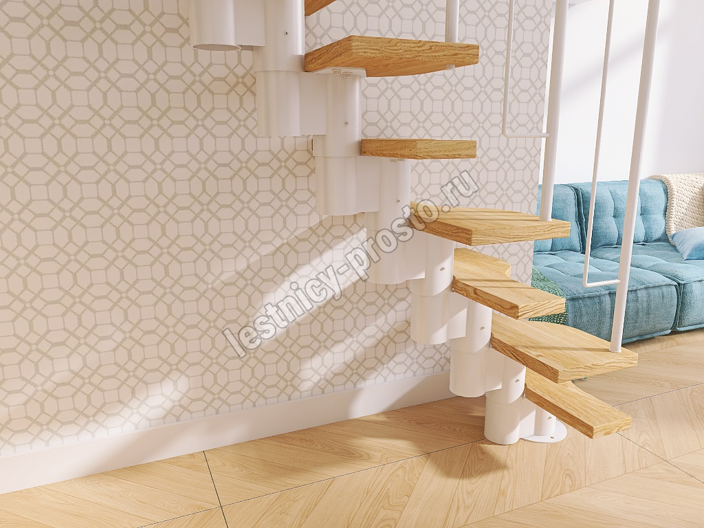 Лестница Prosto Urban White гусиный шаг 600 мм, h198-288 см (11 ступеней), берёза мультиплекс