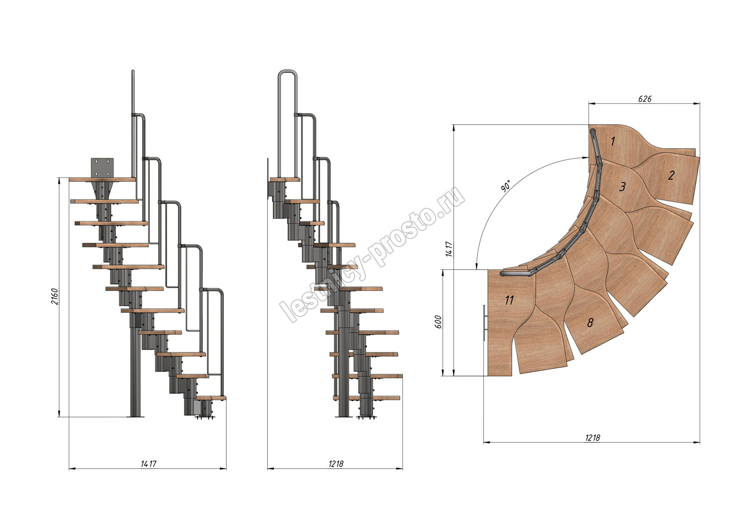 Высота лестницы 1980 - 2880 (11 ступеней) мм