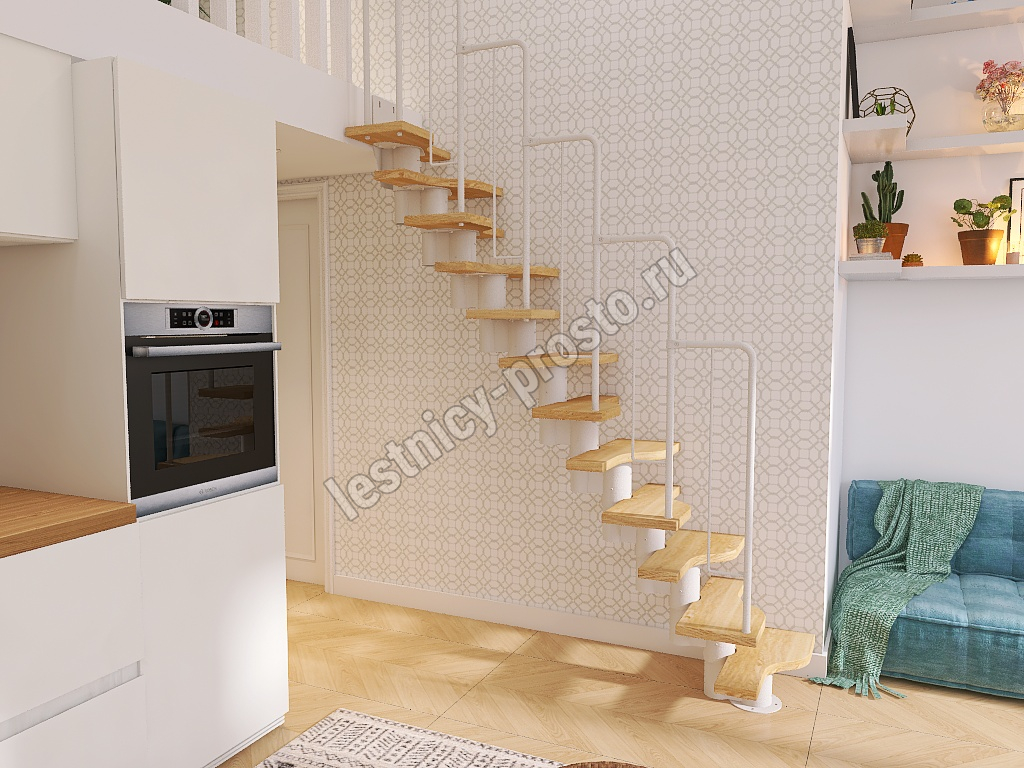 Лестница Prosto Urban White гусиный шаг 700 мм, h216-312 см (12 ступеней), бук