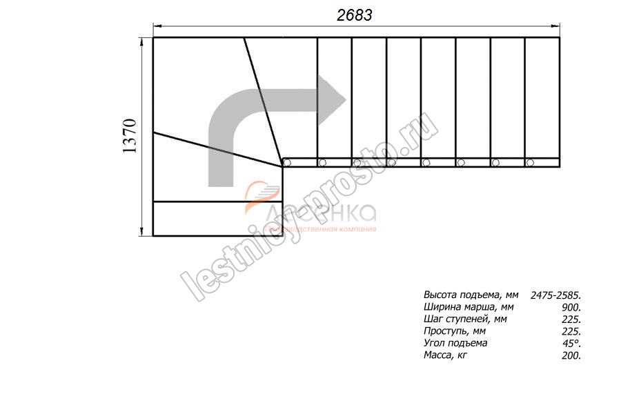 Модульная лестница Фаворит 225 2475-2585, Серый, Сосна, Крашеная, Без Ступений