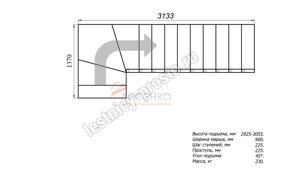 Высота шага 225 мм