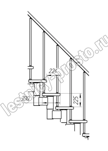 Модульная лестница Спринт 225 2925-3055, Черный, Бук, Нержавеющая сталь
