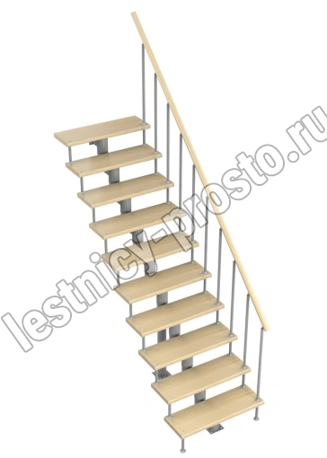 Модульная лестница Стандарт 2250-2350, Серый, Бук, Нержавеющая сталь