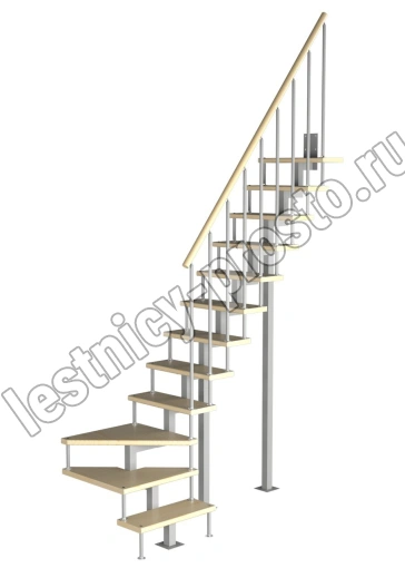 Модульная малогабаритная лестница Компакт 2700-2925, Серый, Сосна, Крашеная