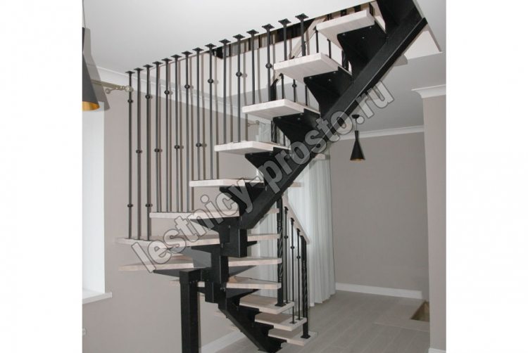 | Лестница PROSTO MONO Г-образная h315 см, ступени лиственница |