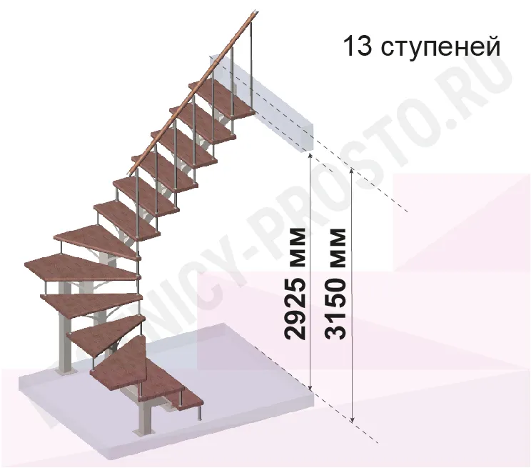 | Лестница PROSTO MONO П-образная, h315 см, ступени хвоя |