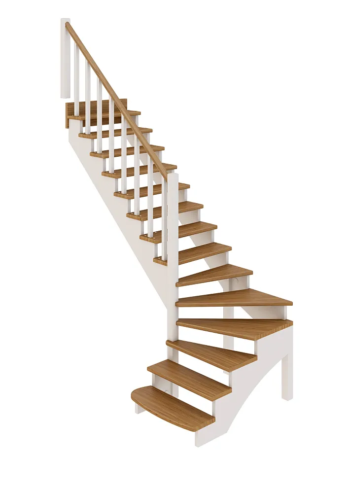 Ступени лестницы изготовлены из дерева категории А/В паркетной склейки без какого-либо покрытия. Вы можете заказать у нас предварительную профессиональную покраску деревянных элементов материалами БИОФА в широкий спектр цветов (стоимость зависит от количества ступеней).