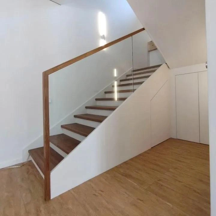 Ограждение из ударопрочного стекла с креплениями и поручнем из нержавеющей стали.