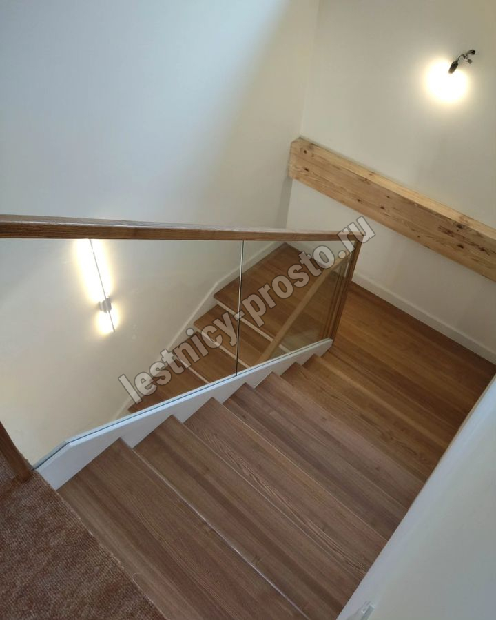 Лестница на второй этаж с ограждением из стекла LP-1-4