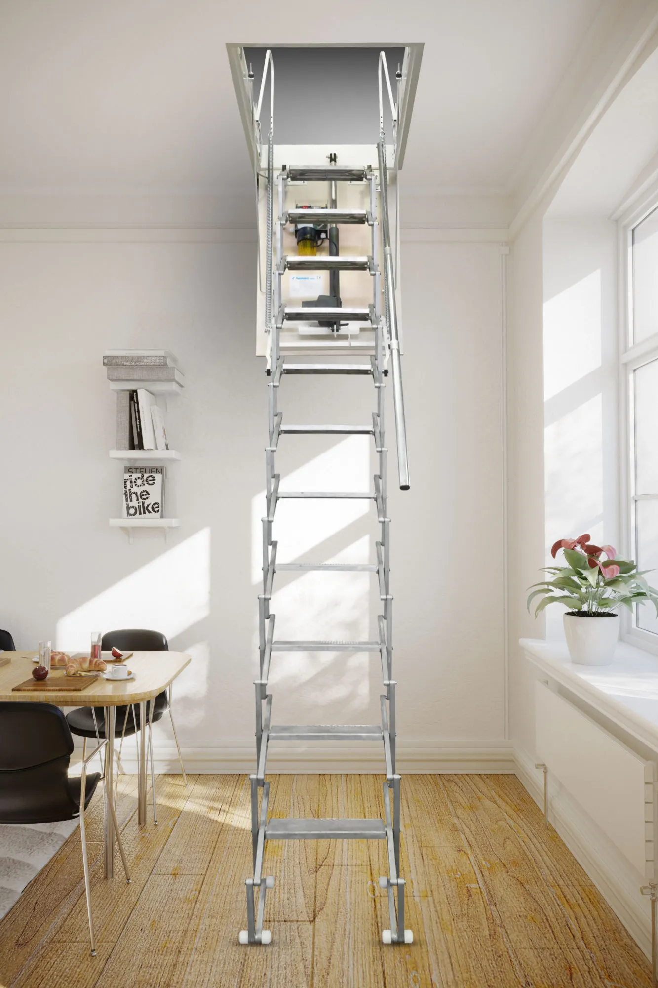 Ступени и поручень выполнены из срощенного бука.